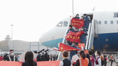 8辆消防车为5架飞机轮流“过水门”以民航最高礼遇向英雄致敬